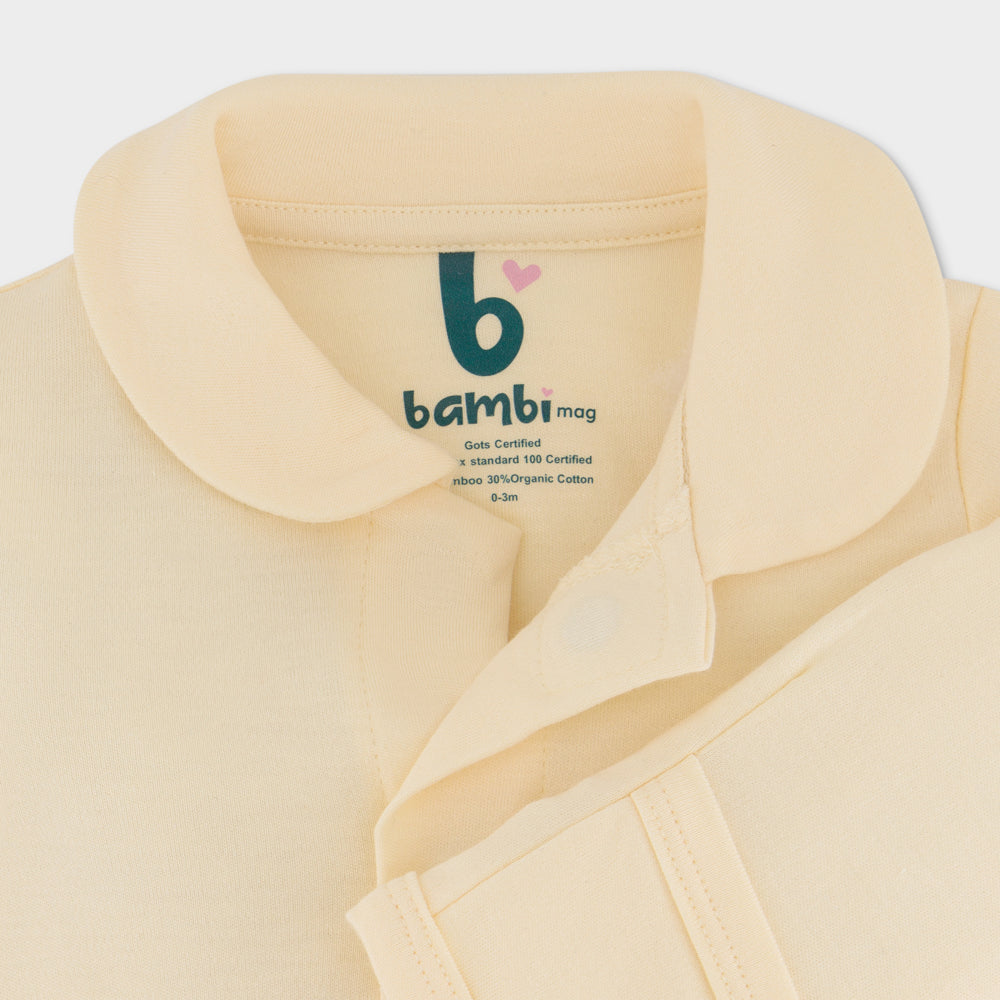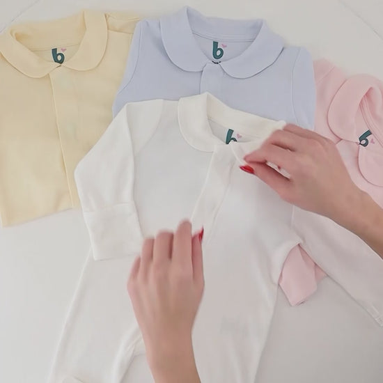 Your baby deserves the purest comfort. Our Dream Cover Footie is made from a premium blend of 70% bamboo and 30% organic cotton, offering a silky-smooth touch, natural breathability, and year-round comfort. Perfect for peaceful sleeps, cozy cuddles, and all-day wear.